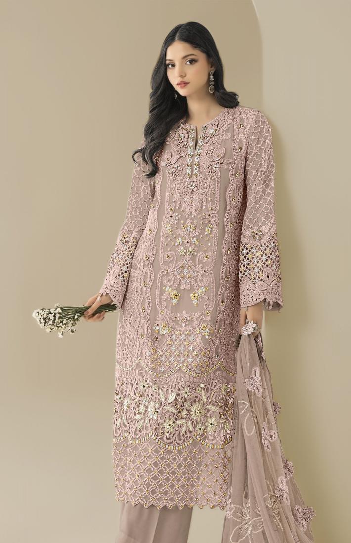 Styles option for the richly embroidered unstitched or semi-stitched suits paired with net or georgette dupattas. If you want for look royal, team them up with heels and statement jewellery.