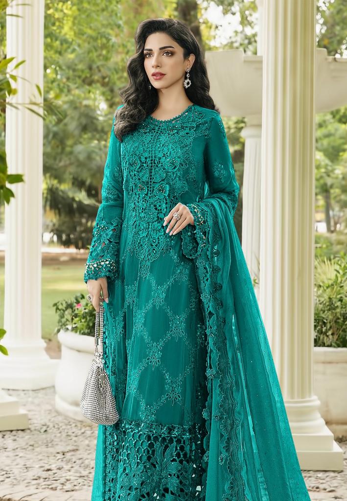 Styles option for the richly embroidered unstitched or semi-stitched suits paired with net or georgette dupattas. If you want for look royal, team them up with heels and statement jewellery.