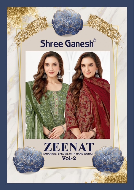 Whether you’re shopping for a festive celebration, a wedding function, or simply updating your ethnic wardrobe, the SHREE GANESH ZEENAT VOL 2 collection promises to add an effortless charm to your look. With vibrant prints, luxurious fabrics, and intricately designed patterns, each suit tells a story of elegance and sophistication.