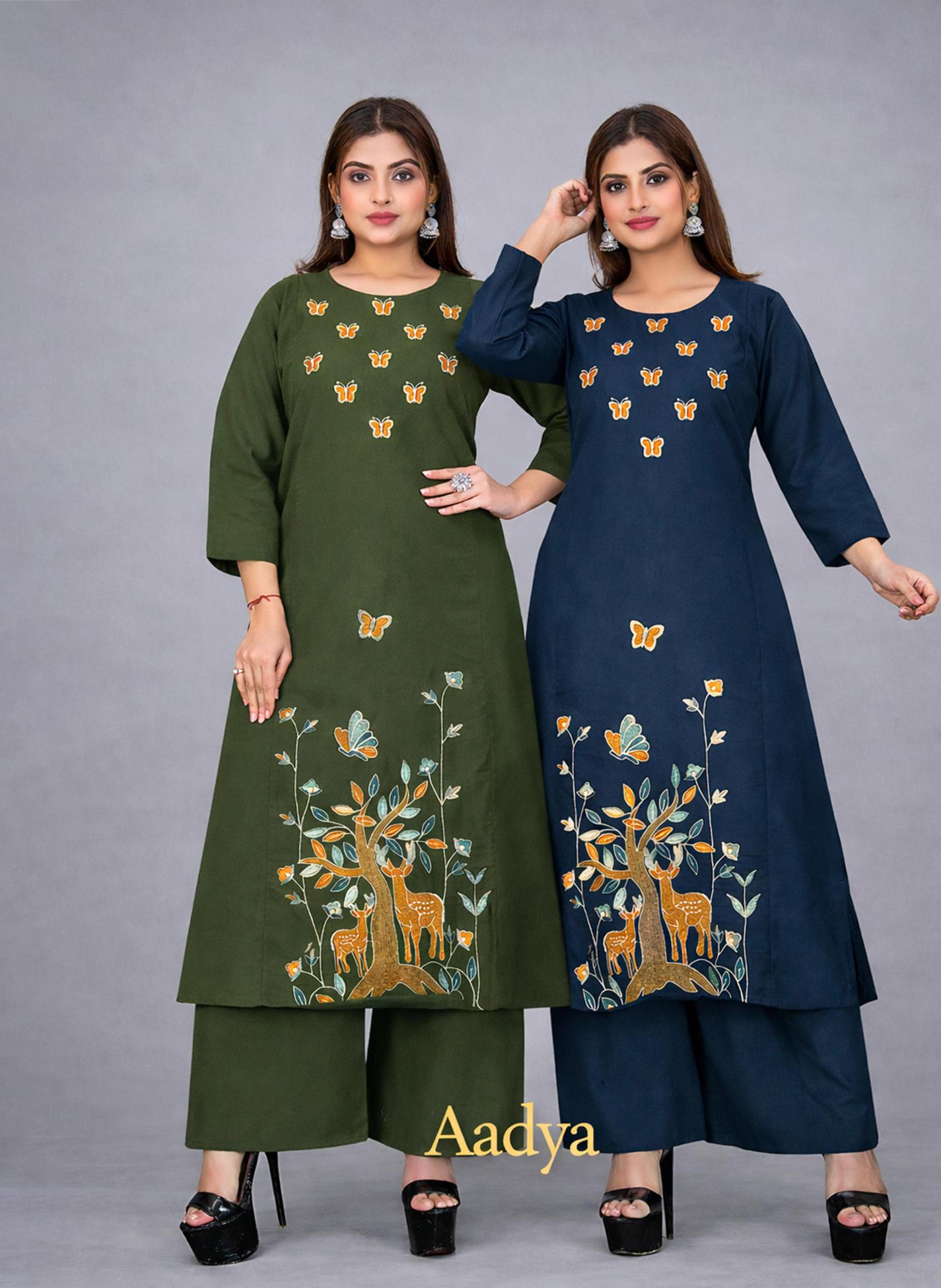 Surili – Aadya Flax Cotton Embroidery Kurta Palazzo Pant Set Traditional has a suit design for every event, whether you are going for formal gathering or a casual get-together you can style the collection: