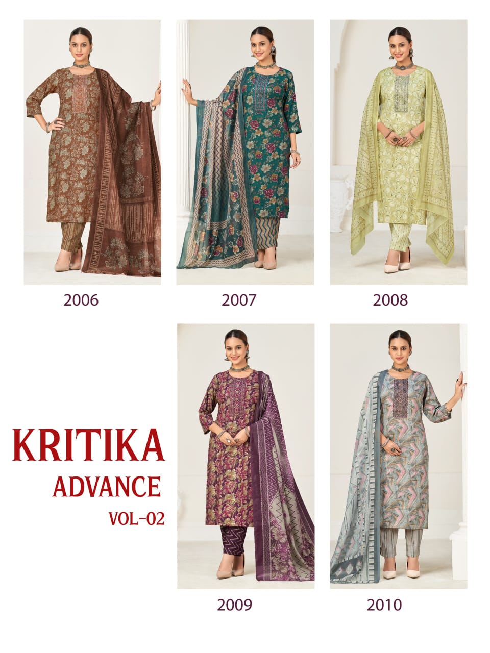 Collection Trend Highlights The SURYAJYOTI KRITIKA ADVANCE VOL 2 collection keeps the classic charm of its predecessors while continuously introducing new pieces to stay aligned with the latest trends.