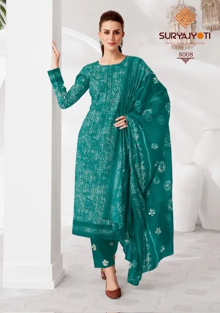 SURYAJYOTI PEHNAVA VOL 8 COTTON PRINTED SUIT WHOLESALER