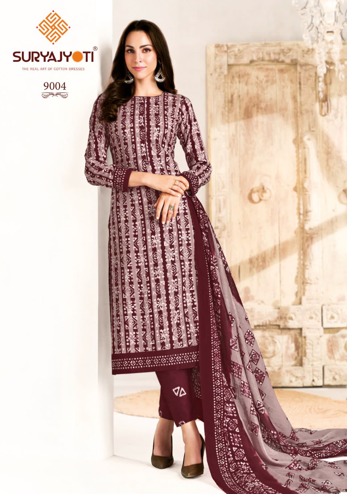 SURYAJYOTI PEHNAVA VOL 9 contains superior Fabrics, with perfect craftsmanship makes it one most best quality suits catalogue. Best commitment to ungearing quality.