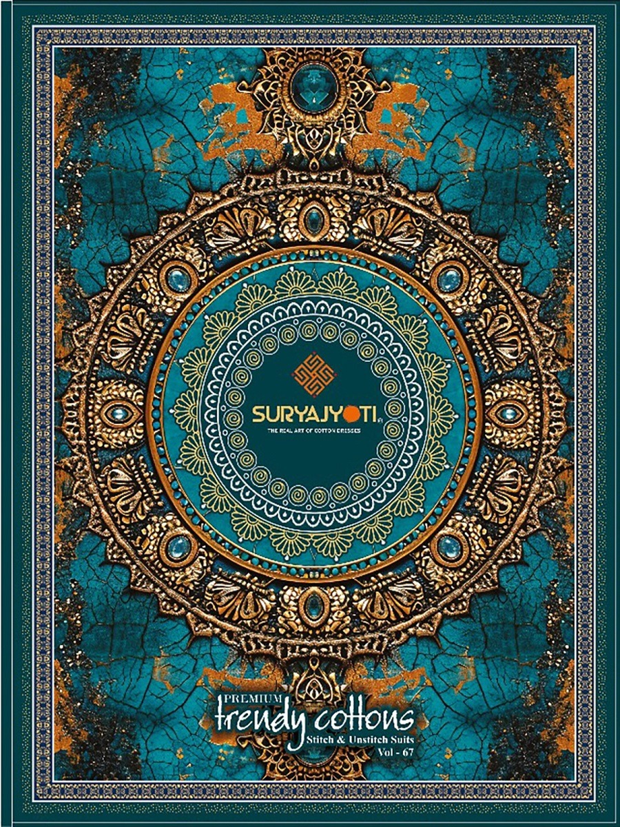 Collection Trend Highlights The SURYAJYOTI TRENDY COTTON VOL 67 collection keeps the classic charm of its predecessors while continuously introducing new pieces to stay aligned with the latest trends.