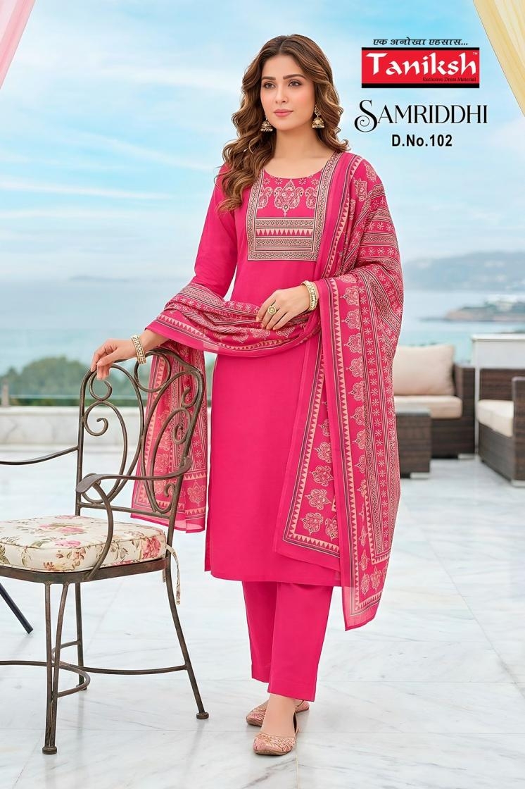 taniksh samriddhi vol 1 series 101 to 108 dhabu cotton readymade suit in wholesale surat suits suitable for gifts for birthdays, anniversaries, or weddings, thanks to their beautiful elegant presentation and timeless unique style.