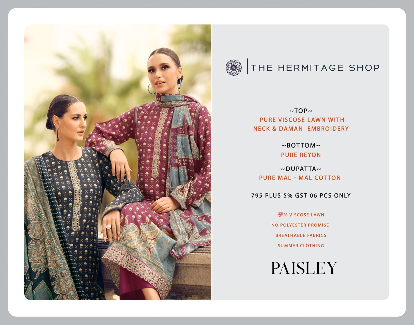 THE HERMITAGE SHOP PAISELY PURE VISCOSE SUITS