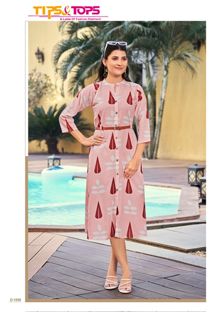 TIPS & TOPS MIMI VOL 3 REYON PRINTED KURTIS WITH BELT