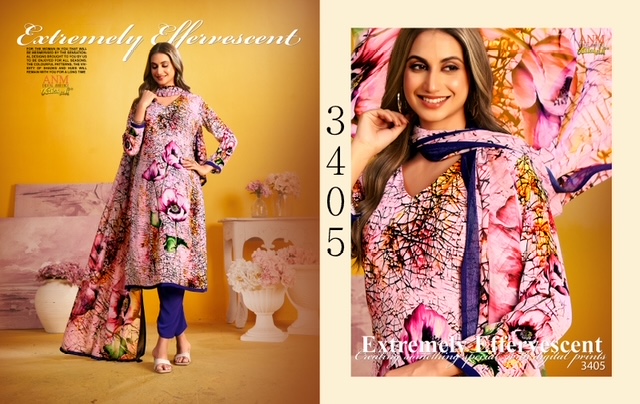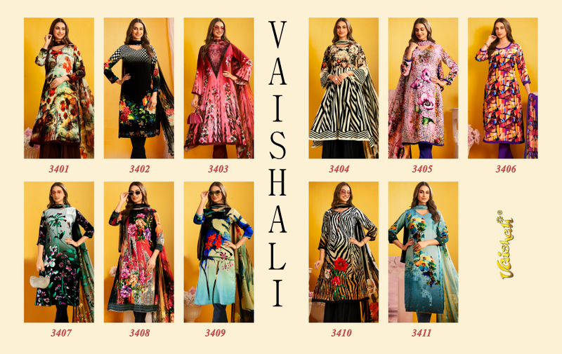 VAISHALI 3400 SERIES contains superior Fabrics, with perfect craftsmanship makes it one most best quality suits catalogue. Best commitment to ungearing quality.