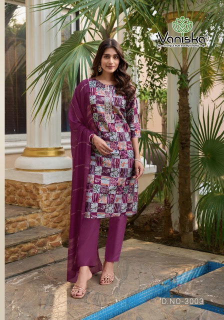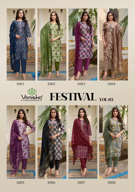 Whether you’re shopping for a festive celebration, a wedding function, or simply updating your ethnic wardrobe, the VANISKA FESTIVAL VOL 3 collection promises to add an effortless charm to your look. With vibrant prints, luxurious fabrics, and intricately designed patterns, each suit tells a story of elegance and sophistication.
