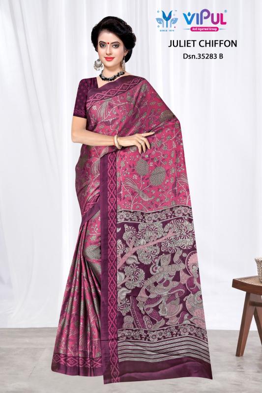 Vipul Juliet Chiffon 35283 A To D catalog best saree wholesalers in surat suitable for both variety of styles and age groups. Can be made in different styles like Anarkali’s, sleek straight-cut suits, and classic salwar sets for every occasion. Whether you want it during your bride-to-be, a busy professional, or someone who loves ethnic wear, this designer suit makes you centre of extraction to everyone.