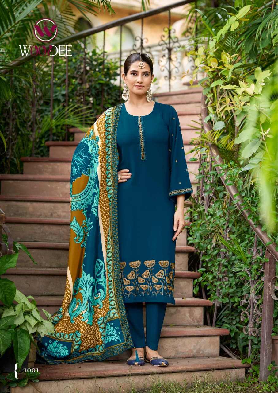 WOODEE BELLA contains superior Fabrics, with perfect craftsmanship makes it one most best quality suits catalogue. Best commitment to ungearing quality.