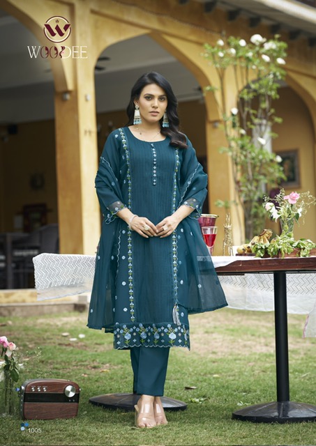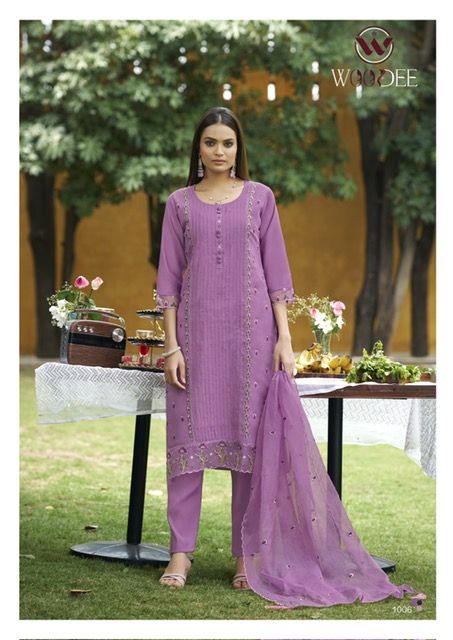 WOODEE WOMIKA suitable for both variety of styles and age groups. Can be made in different styles like Anarkali’s, sleek straight-cut suits, and classic salwar sets for every occasion. Whether you want it during your bride-to-be, a busy professional, or someone who loves ethnic wear, this designer suit makes you centre of extraction to everyone.