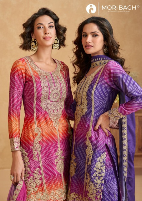 AASHIRWAD MOR BAGH RIA contains superior Fabrics, with perfect craftsmanship makes it one most best quality suits catalogue. Best commitment to ungearing quality.