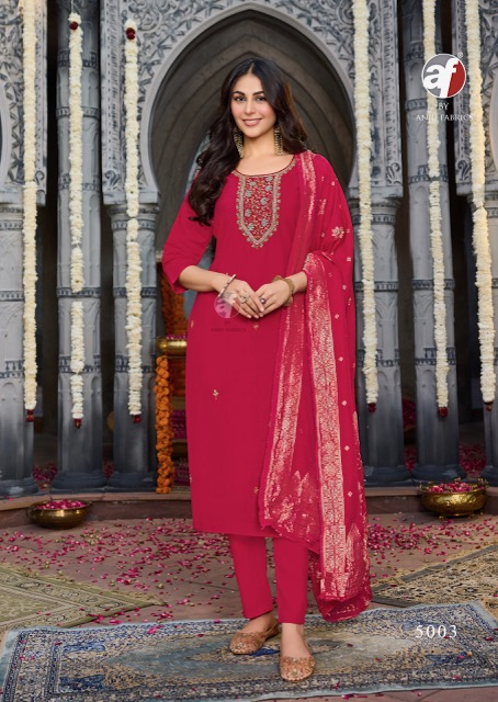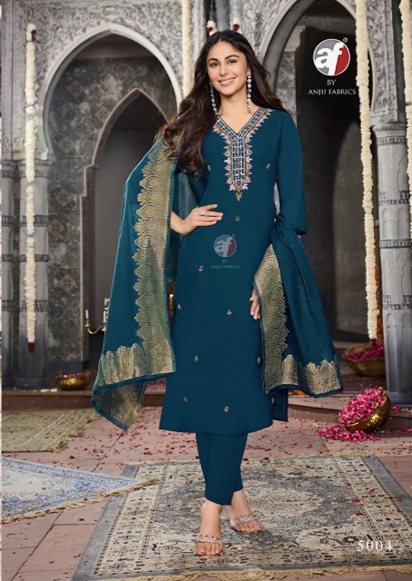 ANJU FABRICS VASTRA VOL 6 contains superior Fabrics, with perfect craftsmanship makes it one most best quality suits catalogue. Best commitment to ungearing quality.