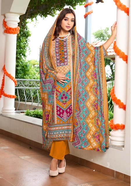 This catalogue contains design which contains both traditional beauty and modern twist. That celebrating India’s rich textile heritage. It Brings awareness and response to current events and cultural trends. Whether you are going for a party, a wedding, or simply it makes your wardrobe traditional, the HARSHIT FASHION FITOOR EDITION 2 collection promises to add shade of beauty to your look. With vibrant prints, luxurious fabrics, and beautiful designs, each suit tells a story of style. Having or showing a lot of experience and knowledge about the world and about culture, art, literature, etc.