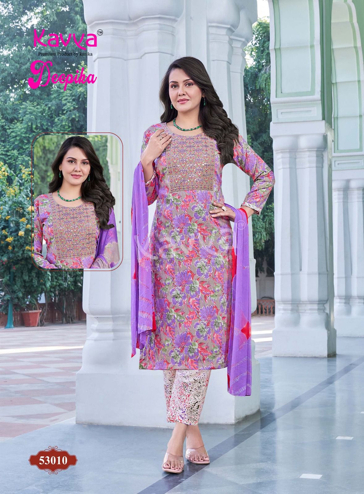 KAVYA contains superior Fabrics, with perfect craftsmanship makes it one most best quality suits catalogue. Best commitment to ungearing quality.