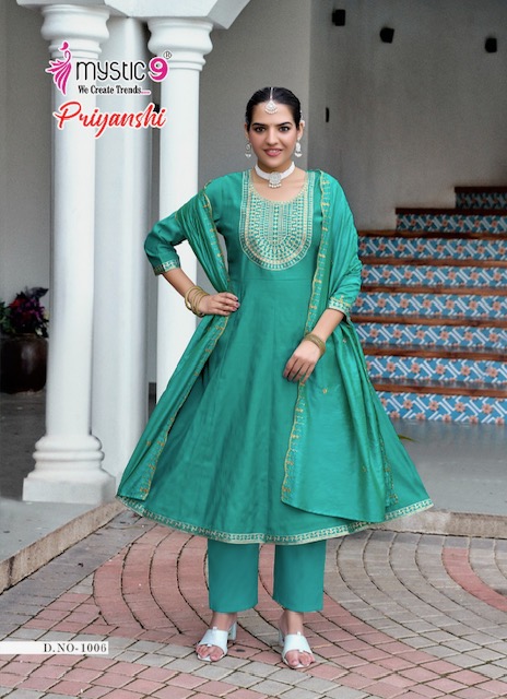 When it comes to traditional wear, quality truly plays and important role. Style never goes out of fashion. MYSTIC 9 PRIYANSHI VOL 1 brings you a beautiful shade of style, design, and luxury that women have been loved for a long time.