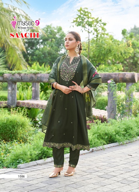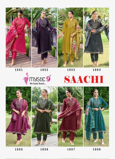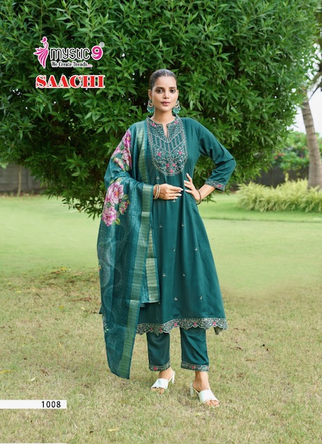 MYSTIC 9 SAACHI suitable for both variety of styles and age groups. Can be made in different styles like Anarkali’s, sleek straight-cut suits, and classic salwar sets for every occasion. Whether you want it during your bride-to-be, a busy professional, or someone who loves ethnic wear, this designer suit makes you centre of extraction to everyone.