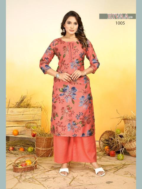 Sabella Rivaa 0.1 catalog co ord set contains superior Fabrics, with perfect craftsmanship makes it one most best quality suits catalogue. Best commitment to ungearing quality.