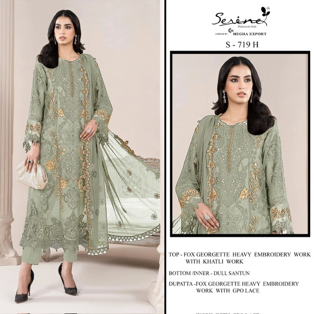 SERINE S-719 suitable for both variety of styles and age groups. Can be made in different styles like Anarkali’s, sleek straight-cut suits, and classic salwar sets for every occasion. Whether you want it during your bride-to-be, a busy professional, or someone who loves ethnic wear, this designer suit makes you centre of extraction to everyone.