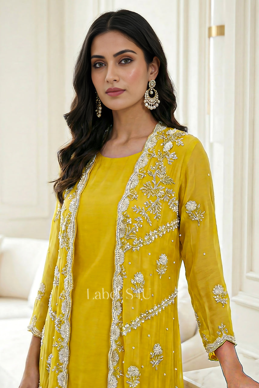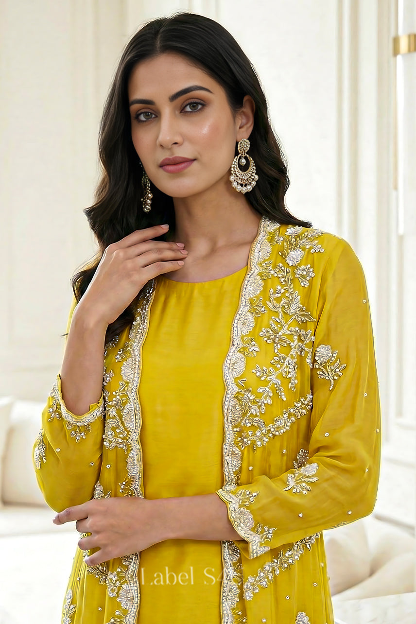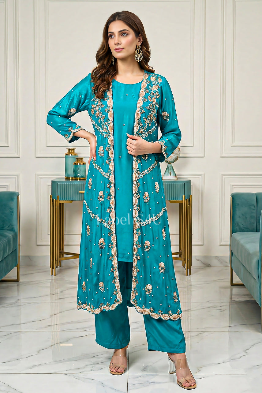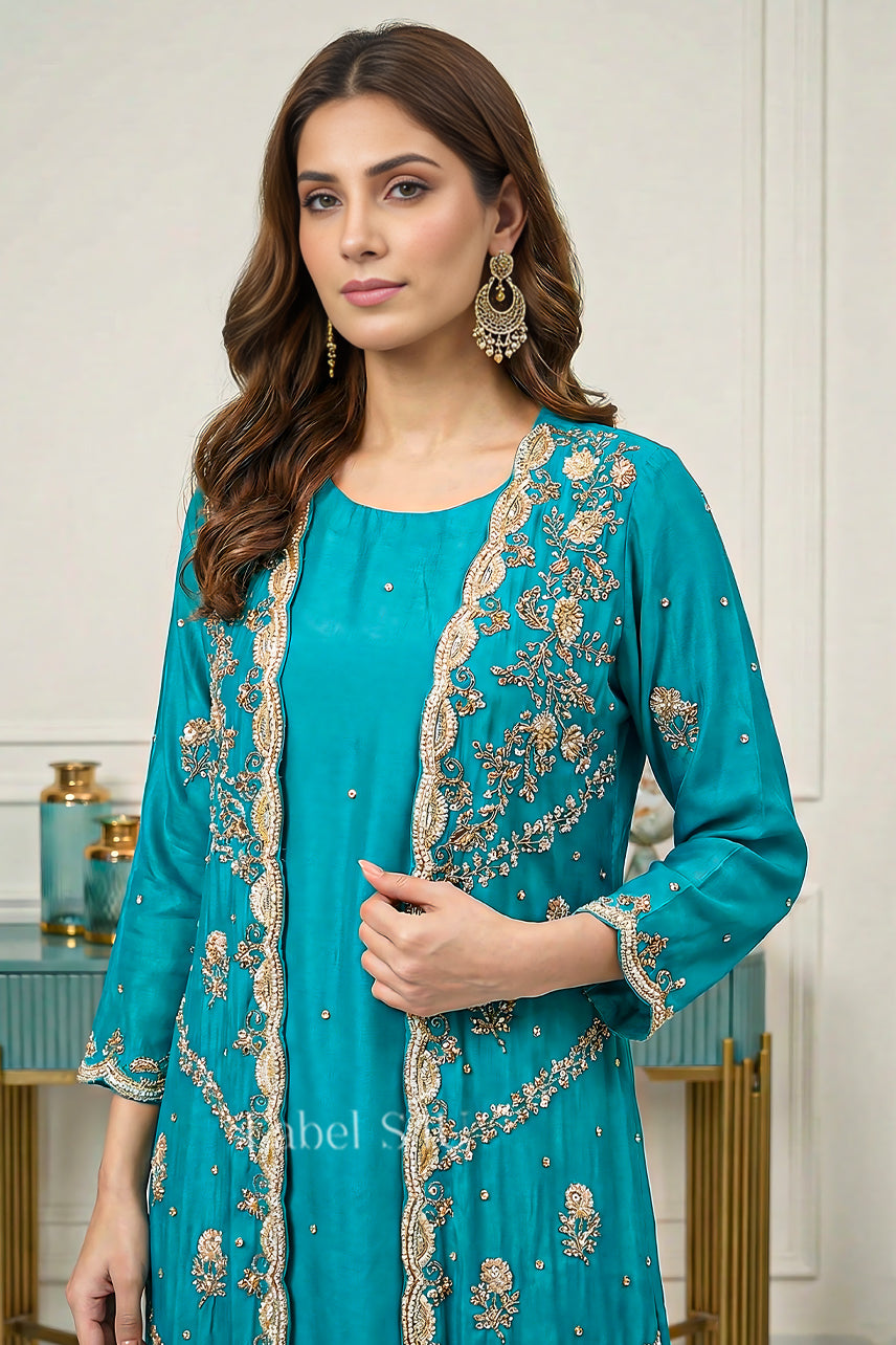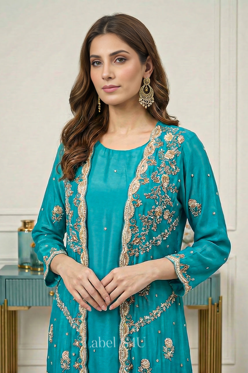 Layered Handwork-Jacket Set: Where Traditional Beauty Meets stylish charm.