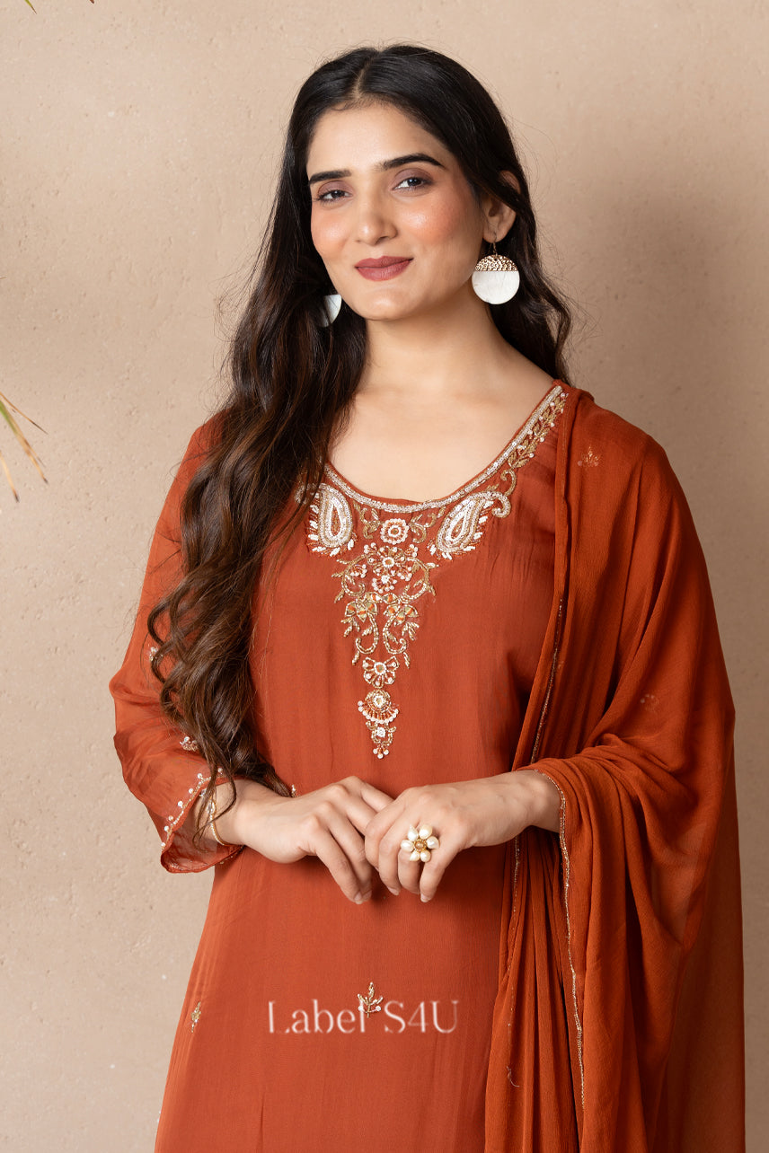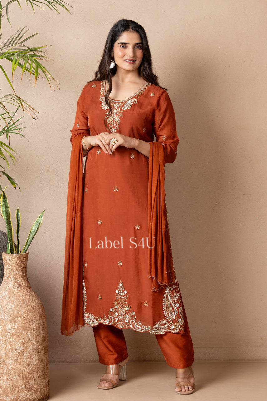 Rust Orange Handwork-Suit Set: Where Traditional Beauty Meets stylish charm.
