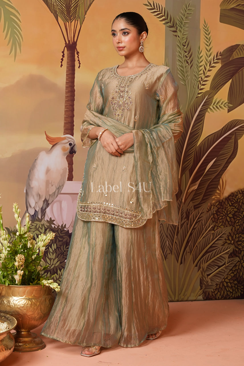 Supercharge your confident with your ethnic style with Shimmering Brown-Sharara Set – where tradition beautifully meets timeless elegance. Shop online today and transform your experience of Indian fashion!